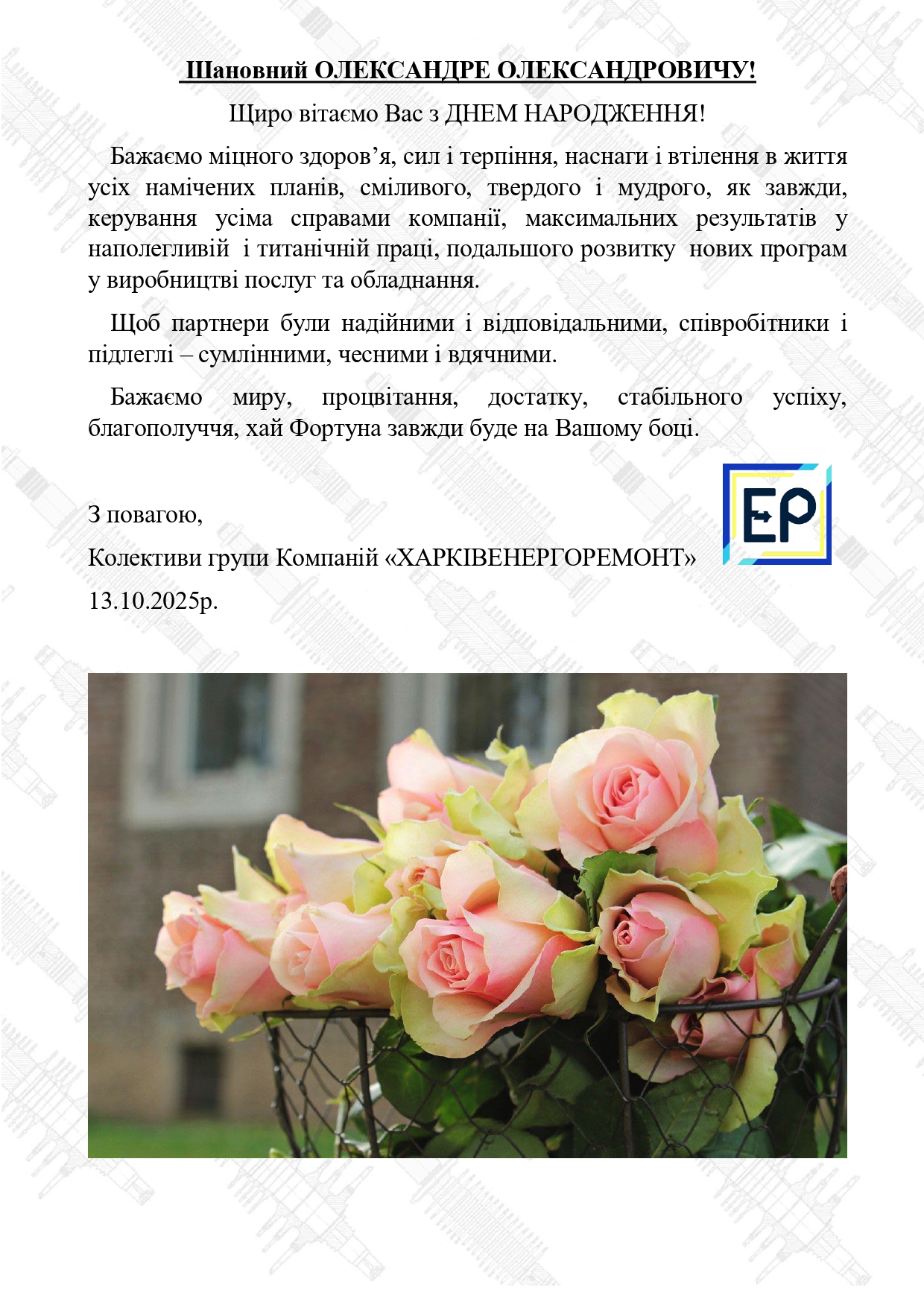 Довгих років Олександру Олександровичу та компанії «ХАРКІВЕНЕРГОРЕМОНТ-ХОЛДИНГ»